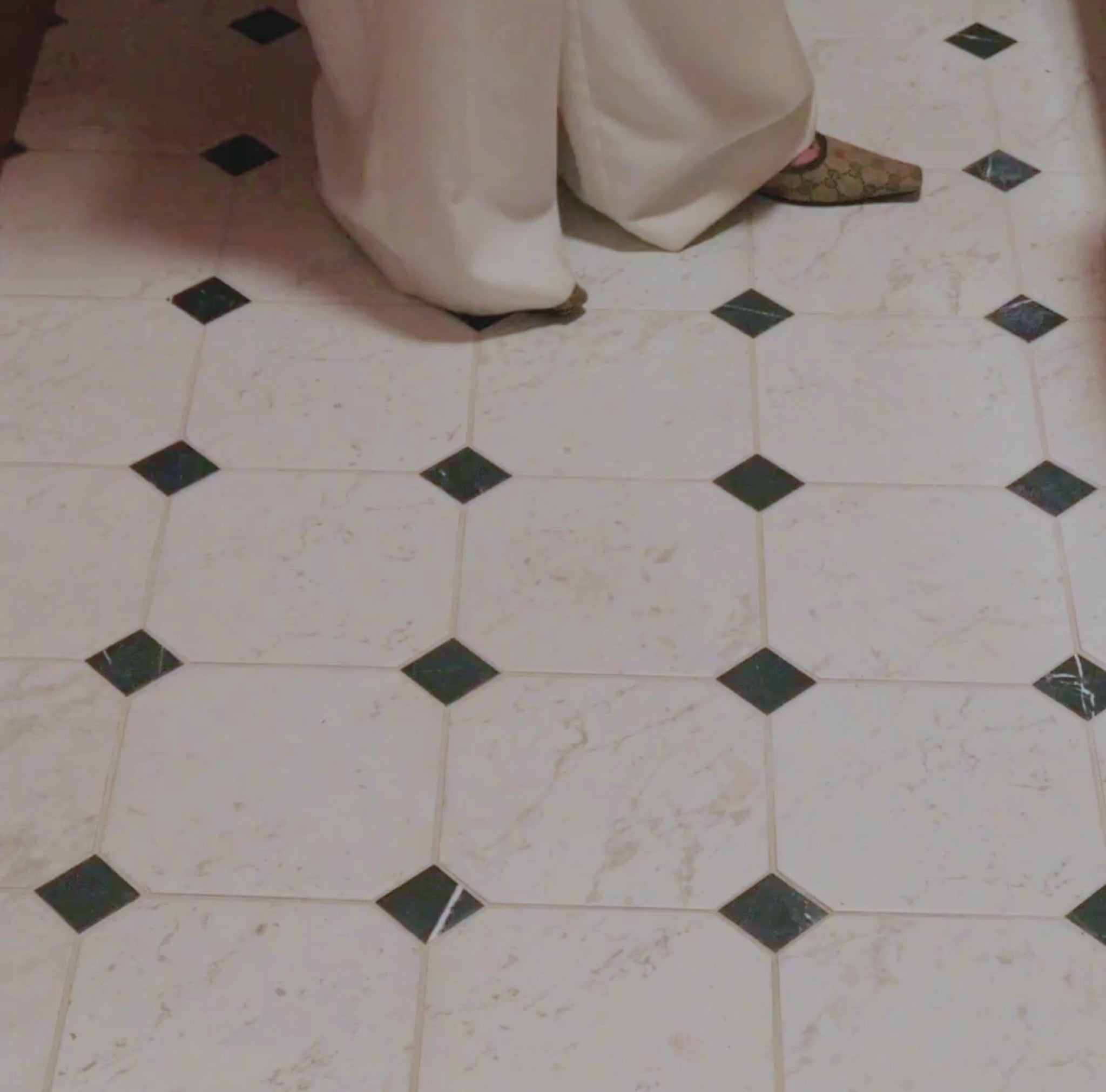 Make a bold yet refined statement with Como Nero Octagon & Dot. This Italian porcelain tile features a deep, inky base accented by a subtle geometric dot pattern, combining modern sophistication with the timeless elegance of marble. Designed to mirror the character and depth of natural stone, it offers all the beauty of marble without the high maintenance.